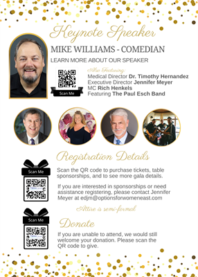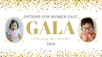 You are invited to attend the Options for Women East Gala on April 23rd. Our theme is Embracing the Miracles. We will highlight stories from our patients who overcame struggles and are now thriving thanks to the prenatal care program at Options East.